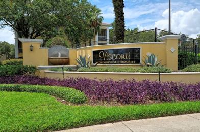 Visconti is a gated condo community. This 2 bedroom, 2 bath unit is on the 3rd floor with a nice view of pond from the balcony. It is a split floor plan with carpet and tile throughout. Has a laundry room with full size washer and dryer. Community offers swimming pool, lighted basketball and tennis courts, fitness center and car wash area. There is also plenty of parking available. HOA approval is also required