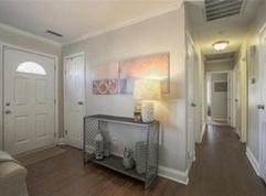 Spacious living room with hardwood floors and charming window to the kitchen - perfect for bar stools! Kitchen features ceramic tile flooring, Granite counters and stainless steel appliances. Eat in area with access to the stamped concrete patio.