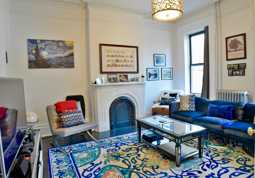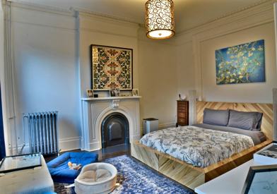 Fabulous multi-level apartment in charming historic rowhouse with private entrance, backyard and garage parking. Can function either as a two or three bedroom with two full bath. This warm and inviting home offers a modern kitchen and bathrooms, dishwasher, in-unit washer/dryer, air condition, dining room, living room, mud room, two decorative fireplaces and two small rooms with windows which can serve as a walk-in closet, office or nursery. Tall windows offer a scenic view of the treelined embankment and allow an abundance of natural light to flood the apartment. Beautiful staircase with skylight and stained glass detail. Also offers a tranquil yard where you can barbecue, relax and unwind. Primely located just a short stroll to Hamilton Park, path train, supermarket, restaurants, dog park, tennis court, fitness center, Citibike, shops, farmers market and daycare. Yard shared with one other unit. Rent includes heat. Don't miss out on the opportunity to live in a recently renovated home with garage parking, historic detail, ample space and a yard that feels like an outdoor sanctuary! Only dogs will be considered. Indoor garage parking $125. Half month broker fee if move in by August 1!