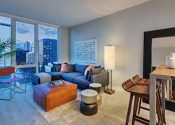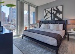 - Expansive windows with roller shades