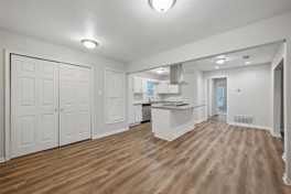 The fully remodeled kitchen is a true highlight, featuring crisp white cabinetry, a sleek granite island, and updated fixtures—perfect for meal prep, hosting, or casual dining. Both bathrooms have been tastefully renovated with modern finishes and upgraded hardware, giving the home a fresh, polished feel.