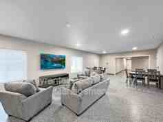 Comfortable Furnishings: Common and dining areas include stylish new furniture and mounted TVs.