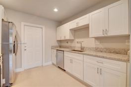 renovated home featuring tile flooring throughout, a modern kitchen with white cabinets, granite countertops, and stainless steel appliances, plus a fully updated bathroom. Enjoy peace of mind with hurricane-impact windows and the convenience of 2 assigned parking spaces right in front, plus plenty of guest parking.