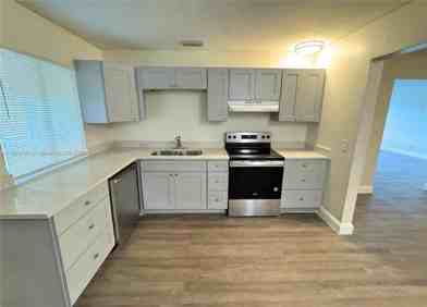 Spacious and updated 3-bedroom 2-bathroom corner unit on the second floor in a quiet Coral Springs community with water views. Unit has approximately 1,350 square feet of living space, and features wood look flooring and tile throughout, contemporary kitchen and bathrooms, stainless steel appliances, laundry room with washer and dryer, separate dining room and eat in kitchen, ample storage, and a large screened patio overlooking the water. Includes 2 parking spaces. Property is conveniently located near schools, parks, shopping, and major highways. Water, sewer, trash, and landscaping included with rent. Pet okay with additional fee. First month's rent, last month's rent, and security deposit due upon move in.