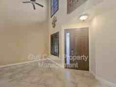 Annual unfurnished townhome that offers four bedrooms, three and a half baths. From the very moment you approach the covered entryway into this 2,412-square-foot luxurious, Spanish Mediterranean townhome, you will be captivated by the exquisite attention to detail that has been built into every beautiful room. As you enter, you will be swept away by openness of the 20-foot ceilings in the grand area with a half bath and ground-floor utility room. You will love the attention to detail including the solid wood shutters and wood blinds. Accenting the floors are designer porcelain tile in a diagonal. The kitchen offers you a beautiful eat-in granite counter-top with 36-inch maple cabinets and over valance lighting, two roll out shelves with trash pullout and GE profile stainless steel appliances. From your kitchen, dining area and extended covered screen lanai, you will be enthralled by your lake view displaying a large fountain. The large primary bedroom and bath featuring dual vanities and walk-in closets are conveniently located on the ground floor. At the top of the solid wood stairway, you have three additional bedrooms, two full baths with an office nook with plenty of storage. The maintenance-free, privately gated Bougainvillea Place Community features a resort-style clubhouse with full kitchen, lounge area, pool, fitness center, private cabanas and barbecue area. Location is minutes from I-75, shopping, entertainment and dining. In addition to the rent, a resident benefits fee of $35.00 will be applied. Tenant occupied 24-hour notice required prior to showing.