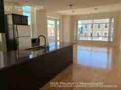 The kitchen features granite counters, sleek cabinetry, dishwasher, built-in microwave stainless steel appliances and breakfast bar for casual dining. High ceilings and open concept between the kitchen and living area is great for entertaining! The living area has gleaming hardwood floors and over sized windows to let in tons of natural light. The updated half bath is located off of the living area for convenient guest use.