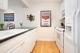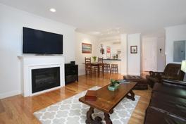 Rarely available apartment in The Nautica, this unit offers one large bedroom with ensuite bathroom and abundant custom built-in closets. The spacious living and dining rooms feature gleaming hardwood floors, gas fireplace and a conveniently located half bath. The bright kitchen offers a separate pantry and is open to the living/dining space, creating an environment perfect for entertaining. In-unit washer and dryer, large private storage and a one car deeded garage parking spot complete this wonderful unit. Heat and hot water are included in the rent. Avail 9/1.