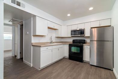 TEMPE! Single level two bedroom, one bath. Newly remodeled featuring new hard flooring throughout, ceiling fans, fresh paint, tile tub surround and beautiful kitchen appliances, cabinetry and counter tops. *Water, sewer & trash included in rent*
