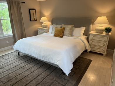 Sophisticated & Fully Furnished Interiors Spanning over 1800 qsqft the home is designed for both grand-scale entertaining and intimate relaxation. The interior is a masterclass in Hamptons style, blending wainscoting, wide-plank hardwood floors, and beamed ceilings with a curated collection of modern comforts and tasteful furnishings. The Great Room: An open-concept living area is flooded with natural light from oversized windows that frame the picturesque backyard. Sink into the deep, comfortable sofas beside the stately fireplace—the ideal spot for cozying up with a book or enjoying conversation. Gourmet Kitchen: The chef-inspired kitchen is both beautiful and functional, featuring top-of-the-line stainless steel appliances, a large marble-topped island with bar seating, custom shaker-style cabinetry, and a separate breakfast nook. It is fully equipped with everything needed to prepare summer feasts from the local farm stands.