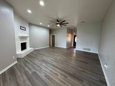 This 4 bed 2 bath house features painted cabinets with sealed butcher block counters in the kitchen and a cozy fireplace in the living room. The spacious master bedroom includes a private bathroom with double closets, a garden tub, and a walk in shower. Ceiling fans are found throughout the home, along with plenty of storage space. Additional highlights include a laundry room with a sliding barn door, an attached garage, and a covered patio overlooking a large fenced backyard. Come by our office to see this property today.