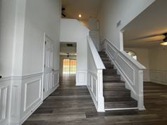 This magnificent 2,282-square-foot home must be experienced to fully appreciate its spacious rooms with updated cabinets, counters, and backsplash, and modern flooring throughout. The modern kitchen boasts ample counter space for cooking and entertaining, centered around a spacious island. The rental features 4 nicely sized bedrooms and two and a half bathrooms, providing ample space for diverse tenant needs and comfortable living. The primary bedroom provides a private retreat, while the white en-suite bathroom exudes brightness and cleanliness. The primary walk-in closet is generously sized. The other 3 bedrooms offer French door closets, and the upper floor features a laundry room with a washer and dryer included. The hallway, complete with full bathroom finishes, completes this remarkable home. Relax and entertain on your private back patio, situated off the dining room, or in your secluded fenced backyard oasis.
