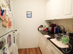 This lovely apartment features good western light, loft like ceilings, excellent closet space (2!), large separate kitchen with pass through breakfast bar space and full sized appliances, including dishwasher and microwave and lots of cabinets. Full tiled bath. Building has elevator, bike room and laundry. Building also features new video intercom security system. Sorry no pets.