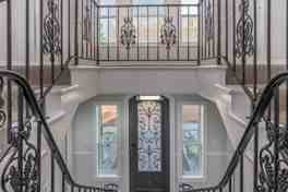 The building exudes character and charm with a herringbone patterned walkway leading to a turn of the century vintage wrought iron door opening to a black & white-checkered marble tile foyer with a grand stairway accented with wrought iron handrails complete with a candelabra chandelier!