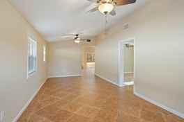 Upon entering the home is a roomy living room with two bedrooms just off to the right. As you continue towards the back part of the house, you are greeted with a large common room with the kitchen opening into the family room. The kitchen could accommodate a large combination sitting and center island. You will enjoy cooking in the spacious kitchen that has plenty of cabinets and quality appliances, plus two doors leading to the outside allowing for plenty of natural light. Three stairs lead you up to the primary bedroom with en-suite bathroom and walk in-shower. Both bathrooms have ample cabinet space and beautiful tile work. All bedroom flooring has been replaced and is brand new!