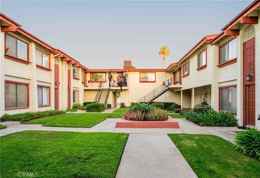 This cozy, updated upper-level condo overlooks a peaceful courtyard and features 2 bedrooms and 1 bathroom. The remodeled, spacious kitchen showcases white cabinetry, quartz countertops, and a dedicated breakfast area. The updated bathroom includes a white vanity with a quartz countertop. Waterproof vinyl flooring runs throughout the unit. Additional features include central air conditioning and heating. The property offers two assigned parking spaces, one of which is covered, along with access to a community laundry room. Conveniently located within a short distance to the golf course, Almansor Park, and schools, and close to restaurants, supermarkets, and shops. Move-in ready and ideal for comfortable living.