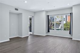 The light-filled living and dining areas seamlessly connect to a contemporary kitchen featuring granite countertops, sleek cabinetry, pendant lighting, and stainless-steel appliances. The functional layout flows effortlessly, creating a clean and elevated aesthetic throughout.