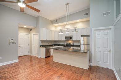 Premier living in the heart of Old City, on a quiet street, close to shops, galleries, and restaurants. You'll be steps away from Market Street, public transportation, and everything desirable Old City has to offer. This 4th (top) floor, 2 bedroom, 2 bath condo features an open floor plan with hardwood floors throughout. Enter the unit into the living room with 15-foot cathedral ceilings and newly installed sun tunnel to allow in natural light. A designer kitchen with 42 inch kitchen cabinets, fabulous granite counter-tops, stainless steel appliances and breakfast bar. Walk down the hall to the second bedroom which includes a full bath and walk-in closet. The bedroom windows have custom remote controlled Hunter Douglas blackout shades. Continue on to the large master bedroom suite that also includes a full bath and walk-in closet. This room features sliding doors that lead out to your private balcony. This condo also includes ceiling fans in each room and two additional storage closets, one of which holds the in-unit washer/dryer. This elevator building is secured with cameras and key fob entry, has a huge additional private storage room(8x10) in the basement. You do not want to miss out on your opportunity live in Old City. Schedule an appointment to see it today!