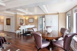 Welcome to the largest residence in all of Tudor City! Available furnished or unfurnished. Boasting approximately 1623 square feet, this magnificent cooperative apartment is the result of combining 4 units to create 1 show-stopping home on the 16th floor of 45 Tudor City Place. With three exposures to the North, West, and South, every room is flooded with natural light and offers wonderful East River or midtown views. This is Manhattan living at its finest! Upon entering you are greeted by a 20-foot long gallery, perfect for displaying your art collection. The oversized Living Room has beautiful new hardwood floors and a wall of windows facing North. Custom wood and glass doors frame the eat-in Kitchen, giving the option for an open or closed concept. Cherry wood cabinets and marble countertops adorn the Kitchen and are accented by stainless professional grade appliances including a Sub-Zero refrigerator, Miele dishwasher, and GE Profile stove with an exhaust hood that vents out. There are two oversized Master Bedrooms with ensuite Baths, both recently renovated. The first Master Bedroom is bright and airy with open city views to the West, four large closets and a stylish Bathroom with shower stall. The Second Master has even greater dimensions (17 14), with open views to the South and West, three closets, a built-in desk, and bathroom with tub. The third Bedroom is currently configured with 2 Murphy beds and plenty of custom built-in shelving, functioning perfectly as a guest suite, home office, or media room. 45 Tudor City Place is a full-service cooperative residence located just a block from the United Nations headquarters and close to Grand Central Station. Amenities include a beautiful rooftop terrace, fitness center (additional fee), laundry facilities, and bike storage. Tudor City is among one of the most picturesque and discrete destinations in the City with all of the conveniences of central Manhattan at your doorstep. Annual - $8,000 Per Month