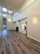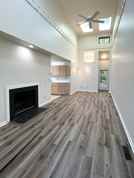 Spacious two-bedroom townhome in the Birnam Wood Neighborhood, boasting an open floor plan, beautiful vaulted ceilings with skylights and large windows. This home has brand new flooring in the living room, hallways and bedrooms, fresh paint, a new stainless steel refrigerator (not pictured), a private back patio leading to a beautiful grassy yard, and 2 parking spaces.