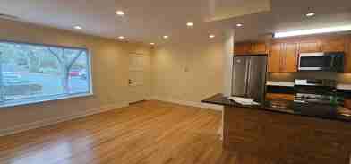 Features a gas stove and central A/C. First floor open concept kitchen and living room has plenty of space for a dining room table and a living room setup. The unit even contains a built-in wall mount for easy installation of flat screen TVs. On the second floor, you will find a LARGE bedroom, a built-in desk, a fully modern full bath with a bathtub, and IN-UNIT LAUNDRY!