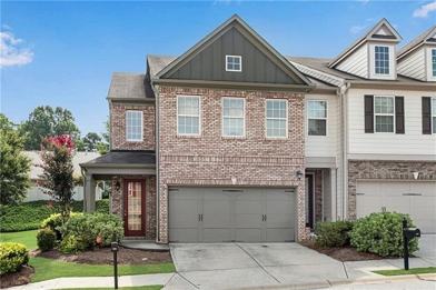 Walk to the award-winning Seckinger High School District! Spacious end-unit townhome in a gated community with extra windows for abundant natural light. This 3-bedroom, 2.5-bath home offers an open floor plan with 9' smooth ceilings, a great room with a gas fireplace and built-in bookcase, a built-in desk area, and a bayed dining area overlooking the kitchen. The kitchen is equipped with espresso 42" cabinets, granite countertops, an island, stainless steel appliances (refrigerator, dishwasher, microwave, and gas range), and a walk-in pantry. Upstairs features a convenient laundry room, a large loft perfect for a playroom or home office, and a vaulted owner's suite with a walk-in closet. The owner's bath includes a garden tub, dual vanities, and a separate shower. The two secondary bedrooms and a full bath complete the upper level. Enjoy a private back patio. Attached two-car garage with opener. Community amenities include gated entry, swimming pool, exercise room, tennis court, and playground. HOA fees are included in the lease and cover landscaping, water, trash, and swim & tennis. Prime location near schools, shopping, restaurants, I-85, and the Mall of Georgia. No pets allowed.