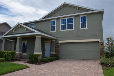Luxurious & Sophisticated – Lawn Care and Pest Control Included! Welcome to this sprawling 5-bedroom, 3-bath, two-story single-family home — a former model residence showcasing high-end interior design in every room. The gourmet kitchen features a premium stainless-steel appliance package, including a double oven, glass cooktop, microwave, and dishwasher. A generously sized breakfast bar adorned with quartz countertops provides ample seating, complemented by rich espresso 42-inch cabinetry and a sparkling designer backsplash. Upstairs, a super-sized loft offers flexible space perfect for a recreation room, fitness area, or home office. The grand primary suite boasts a decorative ceiling and an oversized walk-in closet. The luxurious en-suite bath includes a double-sink vanity, soaking tub, stylish tiled walk-in shower, and a private water closet. For added convenience, the laundry room is located on the second floor. Step outside to a beautifully manicured backyard featuring a covered patio with brick pavers and a cozy firepit — perfect for entertaining. Modern upgrades abound, including recessed lighting in all bedrooms, alarm system with cameras, keyless entry, and pre-wired surround sound. Located in the desirable Laurel Estates, residents enjoy access to a community pool and playground. Just minutes from Walt Disney World Resort, Posner Park, Four Corners, Champions Gate, and major roadways including Interstate 4, Ronald Reagan Parkway, State Road 429, U.S. Route 27, and U.S. Route 192 — placing shopping, dining, and entertainment right at your doorstep. Do not delay — schedule your private showing today!