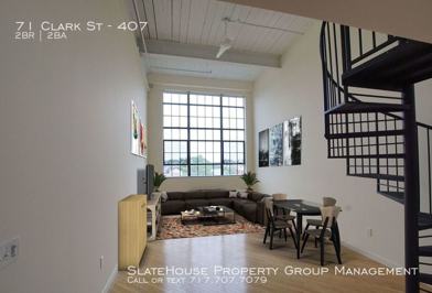 71 Clark St #407, Trenton, NJ is a 2 bedroom, 2 bathrooms apartment for rent. It is located in the Chambersburg neighborhood of Trenton. It has apartment amenities including central heat, high ceilings, hardwood floor, in-unit laundry, air conditioning, ceiling fan, dishwasher, and on-site laundry. Cats and dogs are allowed, making it a pet-friendly apartment.