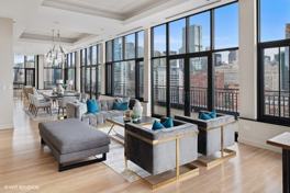 Experience this massive, one-of-a-kind penthouse in the heart of River North. As you enter the sprawling 6,800 square foot property via private elevator, you will be captivated by soaring floor-to-ceiling windows offering unsurpassed views of the city skyline. Spill out onto the awe-inspiring wraparound terrace and soak in breathtaking 360 degree views. Providing an additional 2,400 square feet, the terrace can be accessed from nearly every room and is perfect for entertaining in grand style. Masterfully designed with a highly practical floor plan, the spacious entertaining spaces flow into the home's 4 bedrooms. The master suite includes two cavernous walk-in closets, a custom shoe wall, and coffee bar. Master bath features Turkish mosaic tiling, dual vanities, a walk-in shower with a separate steam closet, and a soaking tub where you can enjoy the twinkling lights of the city. The photos say more than this caption ever could. Enjoy.
