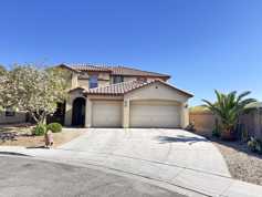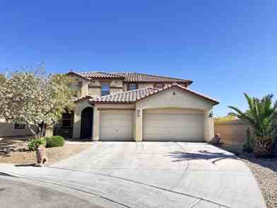 This must see 5 bedrooms 2 story home boasts granite counter tops, lots of kitchen storage, a large master bedroom downstairs with walk-in closet, double sinks in the en suite and soak tube with separate shower enclosure. The huge loft is for your imagination to run wild, with beautiful unobstructed mountain view from balcony, carpeted bedrooms and tile downstairs. Separate laundry room, 3 car garage, conveniently located close to shopping & freeway access. The water feature in the back yard does not work and will not be repaired or replaced. The Intercom system works intermittently and will not be repaired or replaced. TENANT INSURNACE REQUIRED WITH MINIMUM $1000k COVERAGE PER OCCURNACE AND ADDITIONAL WATER DAMAGE RIDER OR UMBRELLA COVERAGE. TENANT TO PAY ADDITIONAL $15 PER MONTH FOR TRASH.