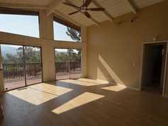 Absolutely stunning home situated in the foothills of Lake Elsinore with panoramic views of the mountains and lake. This charmer will amaze your senses with the architecture and unique features that boast picturesque windows, high-beamed ceilings and skylights. You will love the spacious, open-concept kitchen with a large breakfast bar, granite counter tops and glass tile back splash as blue as the lake. The mantel in the living room adds just enough character to the room to give it a modern farmhouse feel and makes a great place to store your photos, decorative objects or a big screen TV. There is wood laminate flooring throughout the home and the master bedroom is on the opposite wing of the home, offering privacy and it's own retreat from the rest of the rooms. The master bedroom features a bay window with lake views, a large wall mirror and a sliding glass door that leads to the exterior deck. The wrap around wooden deck is the most impressive feature of the home. This is where you can set your outdoor table and chairs and relax with the breathtaking views and lake breeze. This is a must see home! Appliances include dishwasher, gas range, refrigerator and a full size washer and dryer.