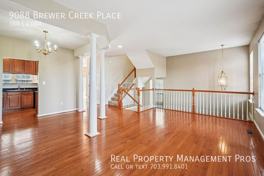 End-unit townhome with two-car garage offering over 2,300 SF of living space, conveniently located near shopping, dining, major commuter routes, and the VRE. The main level features hardwood floors throughout, a formal living and dining area, and a spacious family room with access to the deck. The kitchen is appointed with upgraded cabinetry, granite counters, and ample prep space. The finished walkout basement provides a large recreation room with a gas fireplace. Upstairs, the primary suite includes two walk-in closets, a soaking tub, separate shower, and double vanity. Community amenities include a pool, basketball courts, tot lots, jog/walk paths, and plenty of visitor parking. One dog under 50 lbs considered; no cats.
