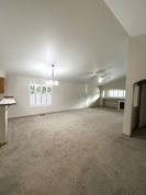 This lovely home features a spacious open floor plan with large living room and dining room, Kitchen with newer stainless steel appliances and bar seating area.