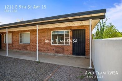 1211 E 9th St Apt 15, Tucson, AZ is a 1 bedroom, 1 bathroom apartment for rent. It is located in the Rincon Heights neighborhood of Tucson. It has apartment amenities including ceiling fan, in-unit laundry, outdoor space, air conditioning, dishwasher, and on-site laundry. Cats and dogs are allowed, making it a pet-friendly apartment.