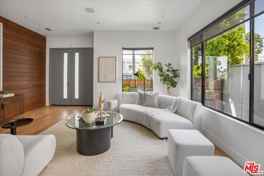 Located in highly coveted Prime Beverly Grove, this private, gated modern architectural home offers seamless indoor-outdoor living. Filled with natural light, the spacious two-story layout includes a basement media room. Features lofty ceilings, recessed lighting, designer tile, and hardwood floors throughout. The custom Chef's kitchen boasts Viking appliances, marble counters, dual sinks, three ovens, large center island, stainless steel accents, and a walk-in pantry. Living room opens via pocket sliding doors to a stunning backyard oasis with pool, spa, firepit, BBQ, waterfall, and gazebo perfect for entertaining.Upstairs, the luxurious primary suite features a fireplace, balcony, soaking tub, rain shower, and large walk-in closet. Walking distance to Melrose Ave dining, shopping, and nightlife.