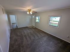 Down the main hallway are three bedrooms, each with a closet, along with a full bathroom featuring a tub and shower combination. The home also includes a convenient laundry area and a rear patio, perfect for enjoying outdoor space. A spacious 2.5-car detached garage provides ample storage and parking.