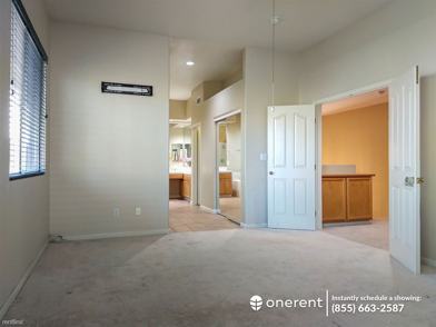 The bright and airy interior features include laminate, carpet, and ceramic floors, recessed/suspended lightings, large windows with blinds, high ceilings, and fireplace. The pretty kitchen is complete with glossy granite countertops, fine wood cabinets/drawers with plenty of storage space, and package appliances such as a refrigerator, oven/range, microwave, dishwasher, and garbage disposal. The bathrooms have vanity cabinets surmounted by a large mirror, bathtub, and shower/tub combo enclosed in a metal-framed sliding glass panel. A hookup connection for a washer and dryer is included and for climate control, ceiling fans, centralized and forced-air are installed. An attached 2-car covered garage. Pets are welcome with a pet deposit of $1000/pet. Smoking is prohibited.