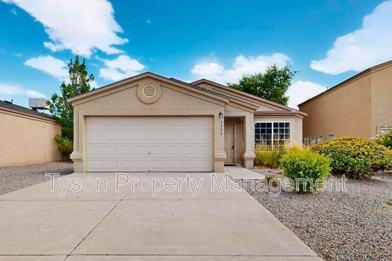 This home is located in the Northern Meadows area near Unser and King. Close to City Center and Rio Rancho Events Center. As you walk into the home there is a tiled entry way that leads into a spacious front room. Through the front room you enter into the kitchen area that provides plenty of counter space and storage space with a closet pantry. The kitchen of this home features all major appliances including a refrigerator, dishwasher, microwave, and an oven. The kitchen then leads into the main living room area which is connected to the backyard. The rest of the home includes a laundry room with washer and dryer units included, a guest bathroom, two guest bedrooms, and a master bedroom with a master bathroom. The backyard includes gravel, bushes, fencing, and a small patio area. There is a two car garage in this home.