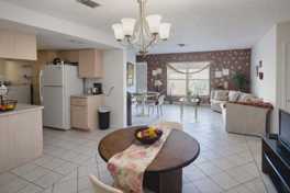 Spacious 2-bedroom, 2-bath CBS home situated on a generous lot in a desirable location close to shopping, dining, and Florida beaches. The home features tile flooring throughout, a bright living and dining area combination, and a large family room off the kitchen offering plenty of space for comfortable living. Enjoy relaxing on the screened-in patio, perfect for Florida's outdoor lifestyle. Additional features include a laundry room under air and a 1-car garage with ample storage. Conveniently located.