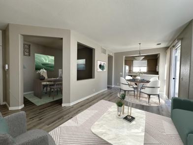 The kitchen is efficiently designed with sufficient cabinet and counter space to support everyday cooking needs. The bathroom is clean and well kept, featuring classic finishes. Neutral tones and durable flooring throughout the apartment create a warm, welcoming environment that can easily complement a variety of dcor styles.