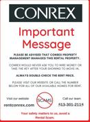 This home is professionally managed by Conrex Property Management. Schedule a showing at your convenience with our self-showing feature. We are a pet-friendly company with no breed restrictions or weight limits. Conrex is committed to compliance with Fair Housing laws. Applicants must meet our financial and background criteria. Visit our website to learn more about our rental criteria and our application process. This property does not qualify for Section 8 vouchers. Your security matters to us, avoid a rental scam. Conrex does not advertise on, Social Serve or Let Go. Conrex would never ask you to wire money or take the key after your showing to move-in.