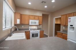 Perfect rental home in a beautiful North Phoenix neighborhood! This charming property features a spacious great room floorplan with split bedrooms for added privacy. The bright, open kitchen includes a refrigerator, gas range, built-in microwave and dishwasher, along with an inviting eat-in dining area plus a separate formal dining room, perfect for entertaining. The primary suite offers a large walk-in closet, dual vanities, and a separate soaking tub and shower. Enjoy Arizona living in the beautifully landscaped backyard with a desert-view fence, extended covered patio, and peaceful wash behind the home, no neighbors directly behind you! Additional features include a newer AC system and a 2-car garage. This one checks all the boxes; comfort, convenience, and a prime location.