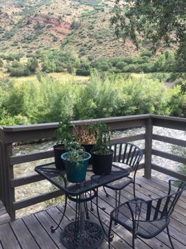 Super cute X large furnished studio, ample kitchen space with all the gadgets, located on the River with amazing views, smells and sounds! deck with table and chairs, utilities included (except Wi-Fi) bus stop 15 minute walk. Coin Laundry on premises. NO PETS