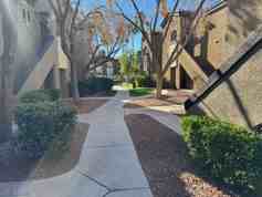 Guard Gated Resort Style Living directly down the street from the World Famous Las Vegas Strip...Great first floor unit steps from the pool and clubhouse with fitness center...secluded covered patio to unwind in and kitchen nicely equipped with stainless steel appliances and separate utility room with washer & dryer...make this your perfect home private yet minutes to world class entertainment on the Strip
