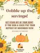 SPECIAL PROMO: SIGN A LEASE AND PAY SECURITY DEPOSIT BY NOVEMBER 15th GET $1500 OFF FIRST FULL MONTH OF RENT!