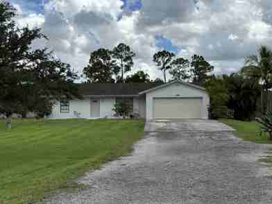 Three bedrooms, two baths, two car garage on paved road near park. Fenced 1+ acre lot, rear screened patio, split bedrooms. Neighborhood park nearby, close to schools and shopping. Pets are case by case with deposit, no dangerous breeds.