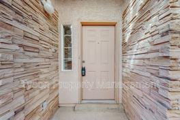 This home is located in Northeast Albuquerque off Spain and Juan Tabo in the Oso Grande neighborhood area near El Oso Grande park. As you enter into the property there is a spacious living room available which also features a decorative fireplace. Through the living room you have access to the dining room and kitchen areas. The kitchen of this home includes all major appliances such as a refrigerator, a dishwasher, an oven, and a built-in microwave. This home also offers onsite laundry with washer and dryer units available. A guest bathroom completes the lower level. The upper floor offers a guest bedroom, a guest bathroom, and a primary bedroom with a primary bathroom. The backyard of the home is fenced with landscaping and a patio area. There is a single car garage in this home.