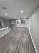 The condo features a brand-new gourmet kitchen with soft-close cabinets, granite countertops, a large peninsula island with pendant lighting, and stainless steel appliances. The open floor plan flows into the living and dining areas, making it perfect for everyday living and entertaining.