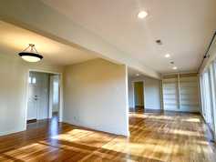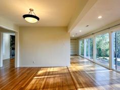 Interior Features: The interior has been updated with newly refinished hardwood floors, fresh paint, and recessed lighting throughout. An open-concept living and family room includes a gas-burning fireplace and connects to a separate dining area off the entry. The back of the home features multiple sliding doors that provide natural light and access to the rear yard.