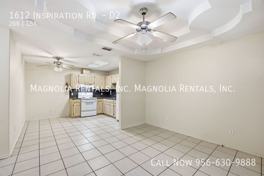 Welcome to 1612 Inspiration, located in the heart of Mission, TX. This cozy 2-bedroom, 1-bathroom apartment features an open floor plan with vaulted ceilings, creating a spacious and inviting atmosphere. The living room is perfect for relaxing or entertaining guests, while the walk-in closet provides ample storage space. Enjoy the convenience of ceiling fans, a master bath, and a washer & dryer included in the unit. The gated subdivision offers added security and peace of mind. Tenant pays for all electric utilities, and water, trash pickup, and lawn care are included in the rent. With a 12-month lease and a strict no smoking policy, 1612 Inspiration is the perfect place to call home.