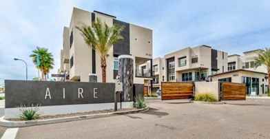 **COMING SOON*** 68th St/McDowell. Unfurnished long term Contemporary upscale resort style living in this luxury tri-level townhome in fantastic South Scottsdale location with attached 2 car garage! Aire on McDowell is an exclusive gated community minutes to Papago Buttes, Phx Zoo, Botanical Gardens, spring training, Tempe Town Lake, Old Town Scottsdale, Fashion Square, airport, ASU campus and major employers State Farm, Carvana, Ziprecruiter and Microsoft and close access to hiking, biking, shopping and dining. This premium, energy efficient corner unit has tons of upgrades including upgraded gravity fed shades, with ground floor bonus room that could be a guest bedroom, office or playroom/media room with slider doors to private patio with travertine and turf grass. Attached 2 car garage. Second floor is open concept including a beautiful extended chef's kitchen perfect for entertaining with oversized island, quartz counters, pendant lighting, tons of cabinet and counterspace, stainless appliances, gas oven range and built-in desk/work area. Formal dining and living areas with beautiful windows bringing views and tons of natural light and wrap around balcony. Third level has 3 bedrooms including stunning primary suite with double sinks and walk in shower with dual showerheads. Inside laundry with washer/dryer included. Relax or entertain with amazing views of Camelback Mtn on the rooftop deck! Water softener, reverse osmosis system and tankless water heater! Community heated pool and spa, outdoor kitchen with BBQ and fitness center. Owner will consider small dog on request, Sorry, no cats. Call for private showing appt. Please do not disturb occupants.